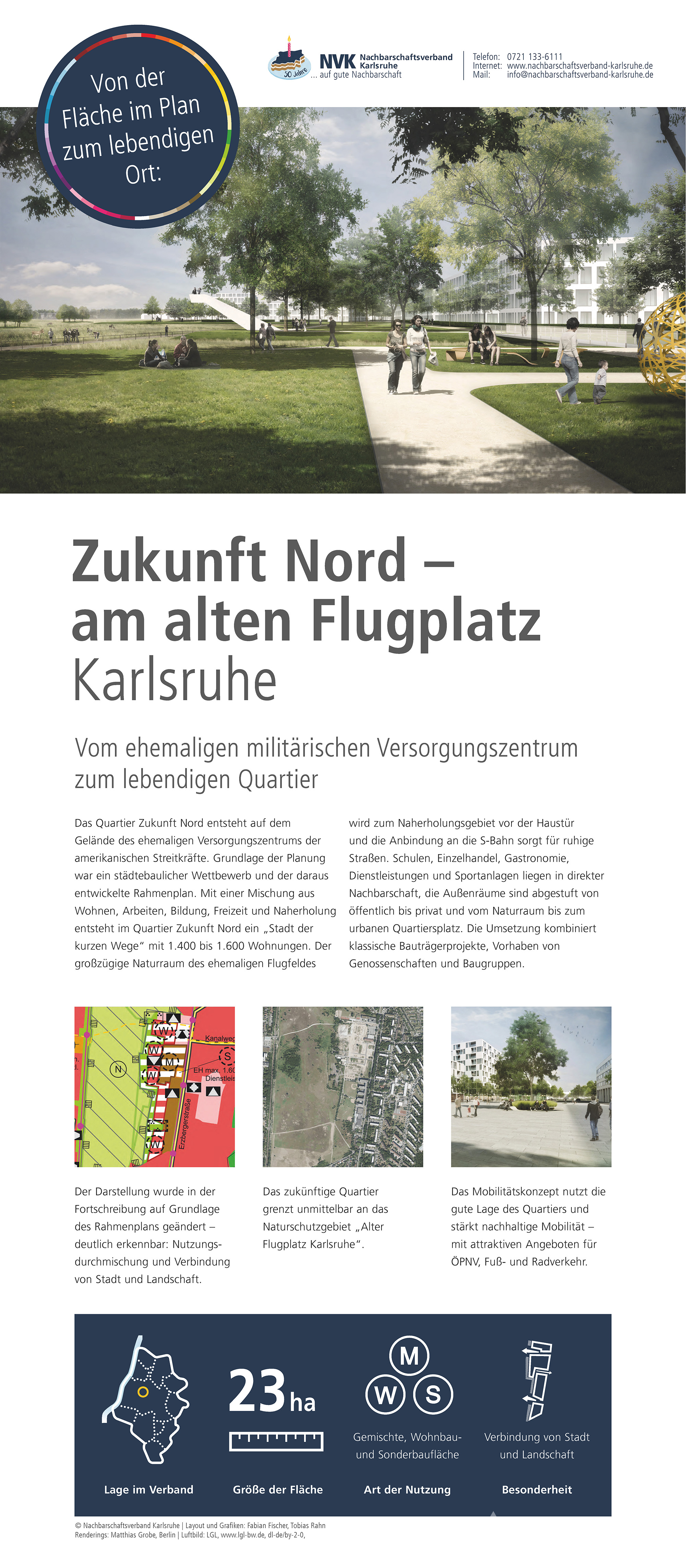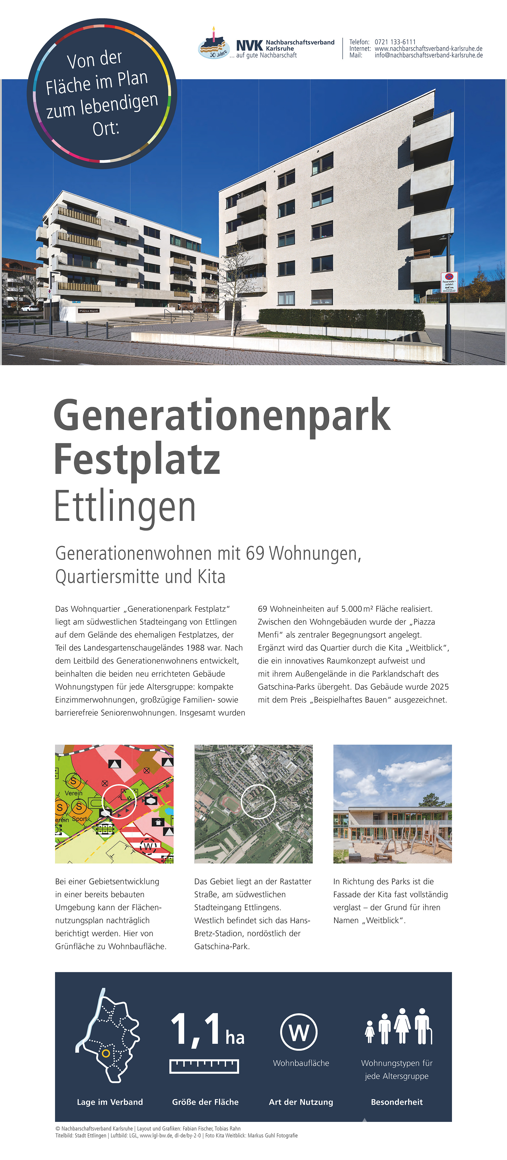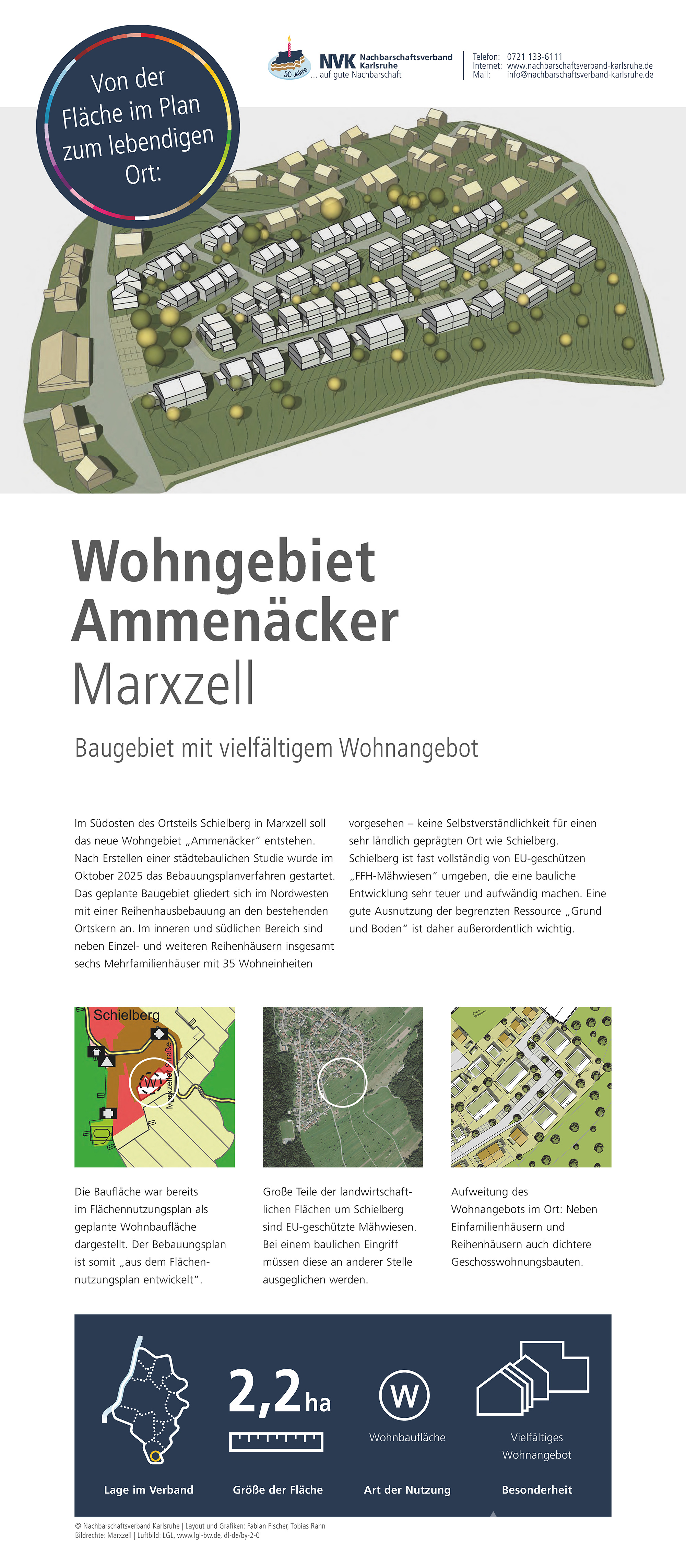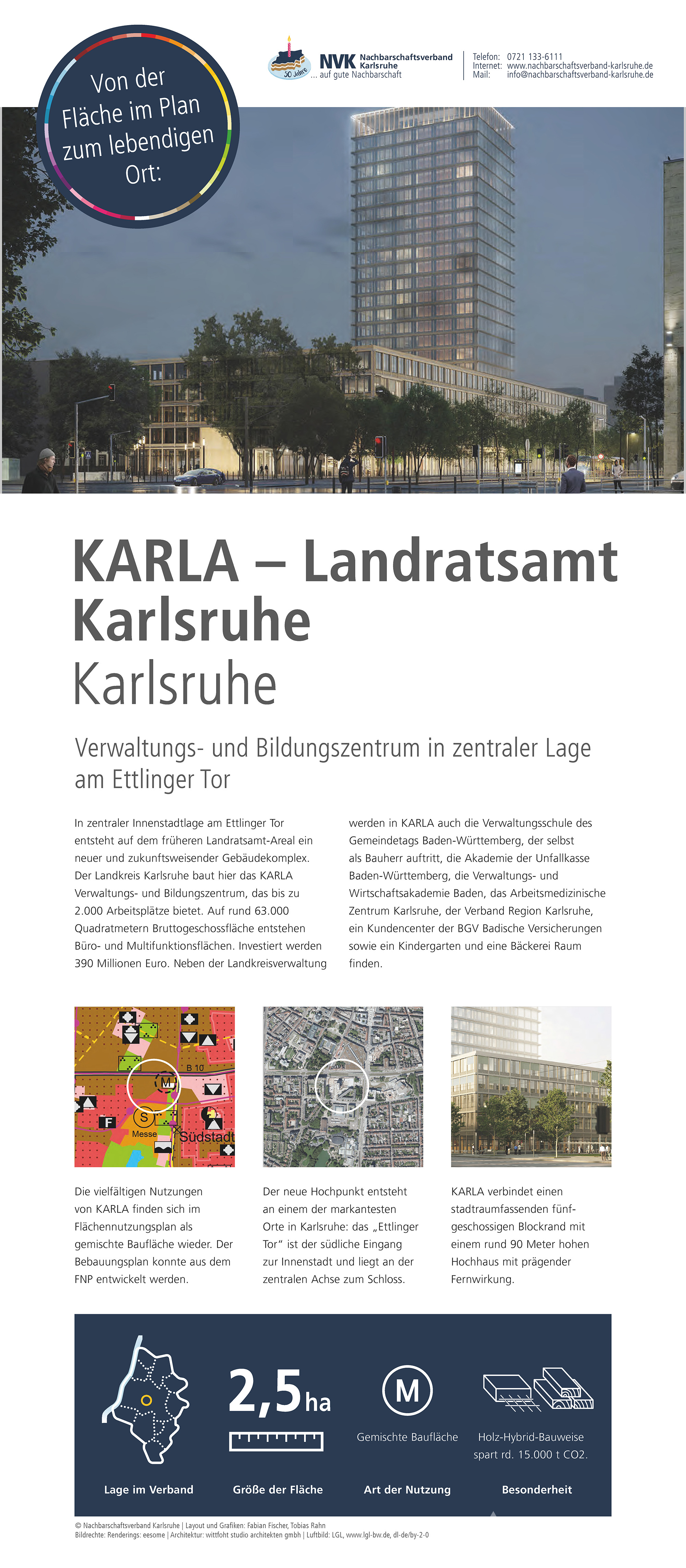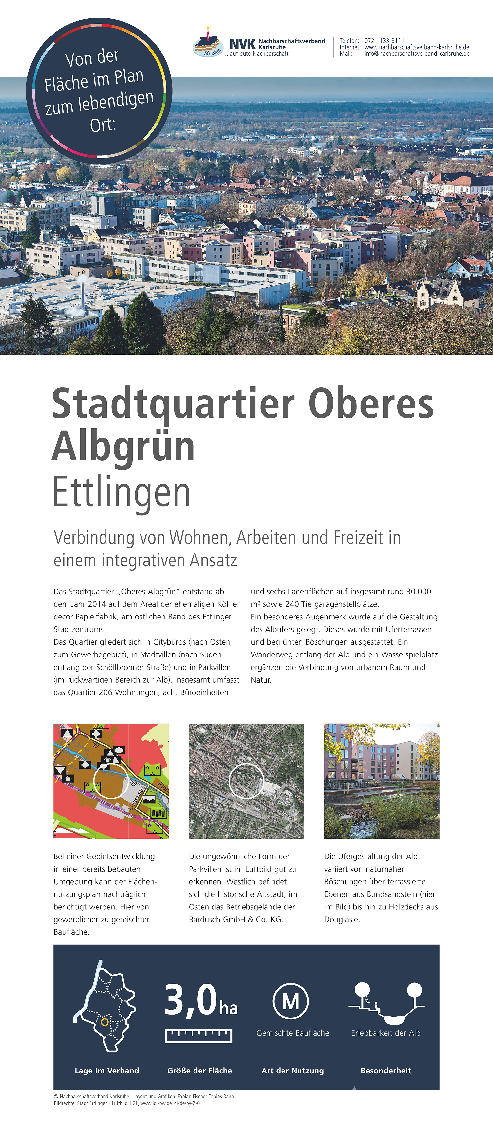 Im Jubiläumsjahr zeigt der Nachbarschaftsverband Karlsruhe eine Ausstellung zur Arbeit des Verbandes, zur Flächennutzungs- und Landschaftsplanung sowie zu ausgewählten Projekten aus den Mitgliedskommunen. Hier sind die Plakate, die auch bei den Jubiläumsveranstaltungen präsentiert werden zu finden.
