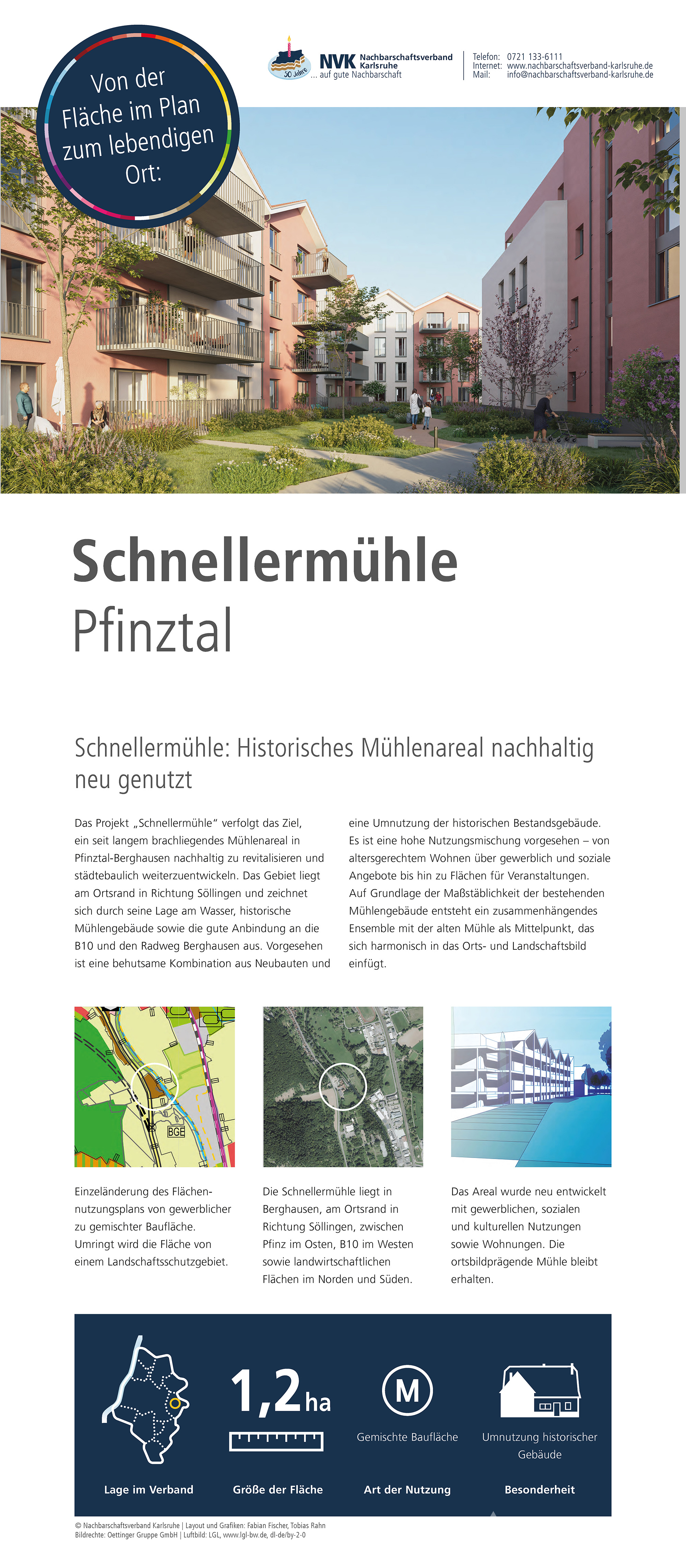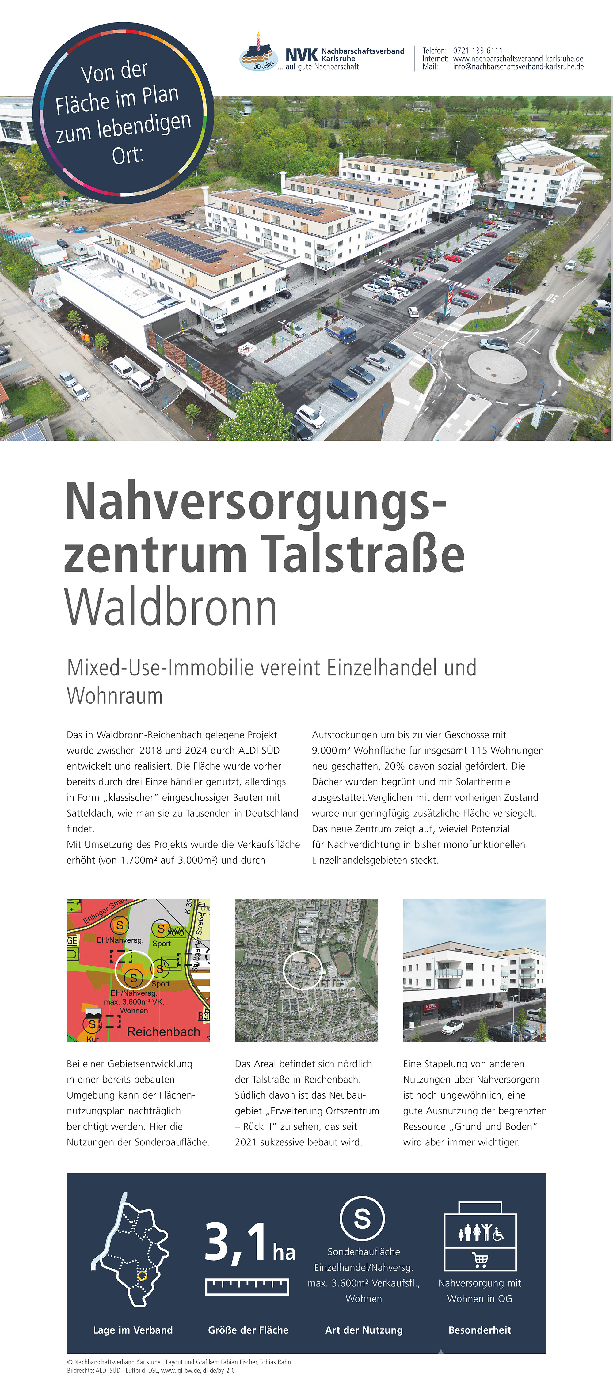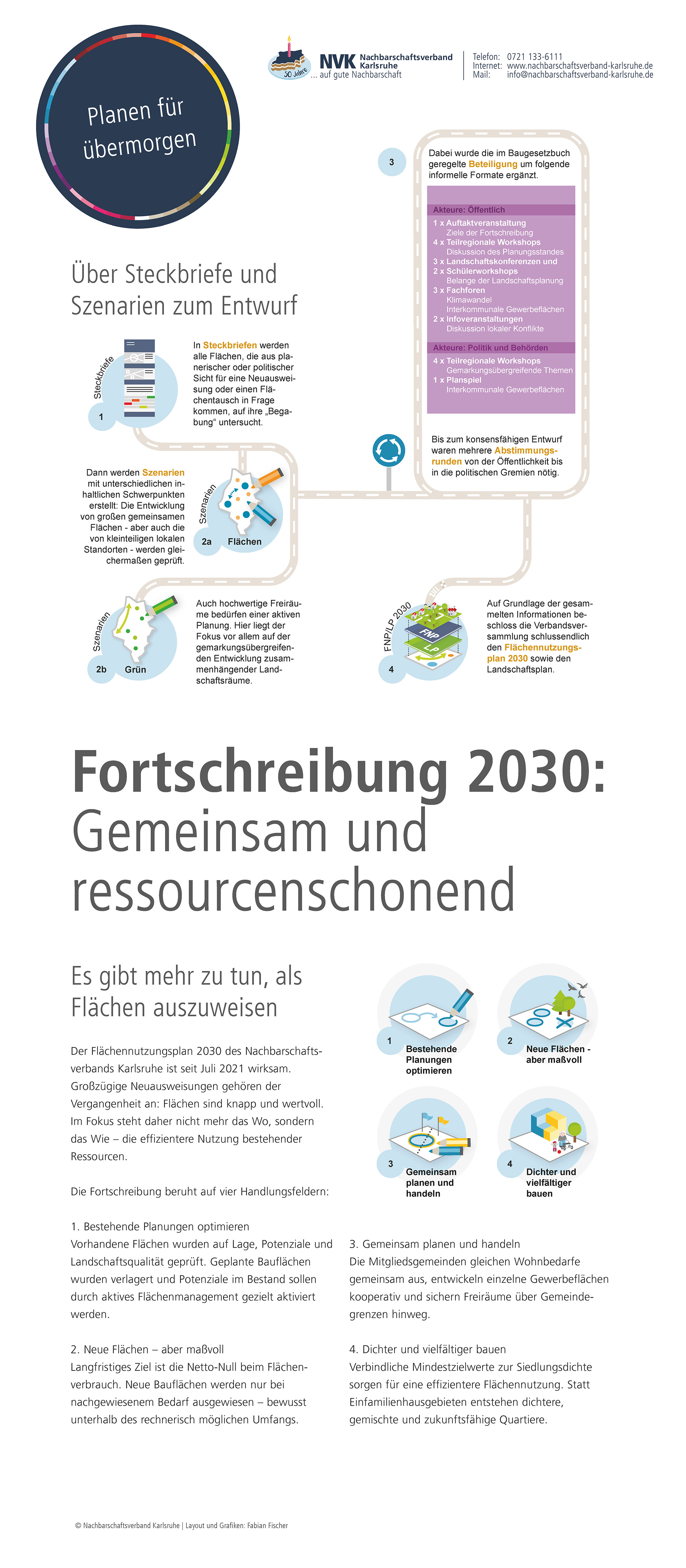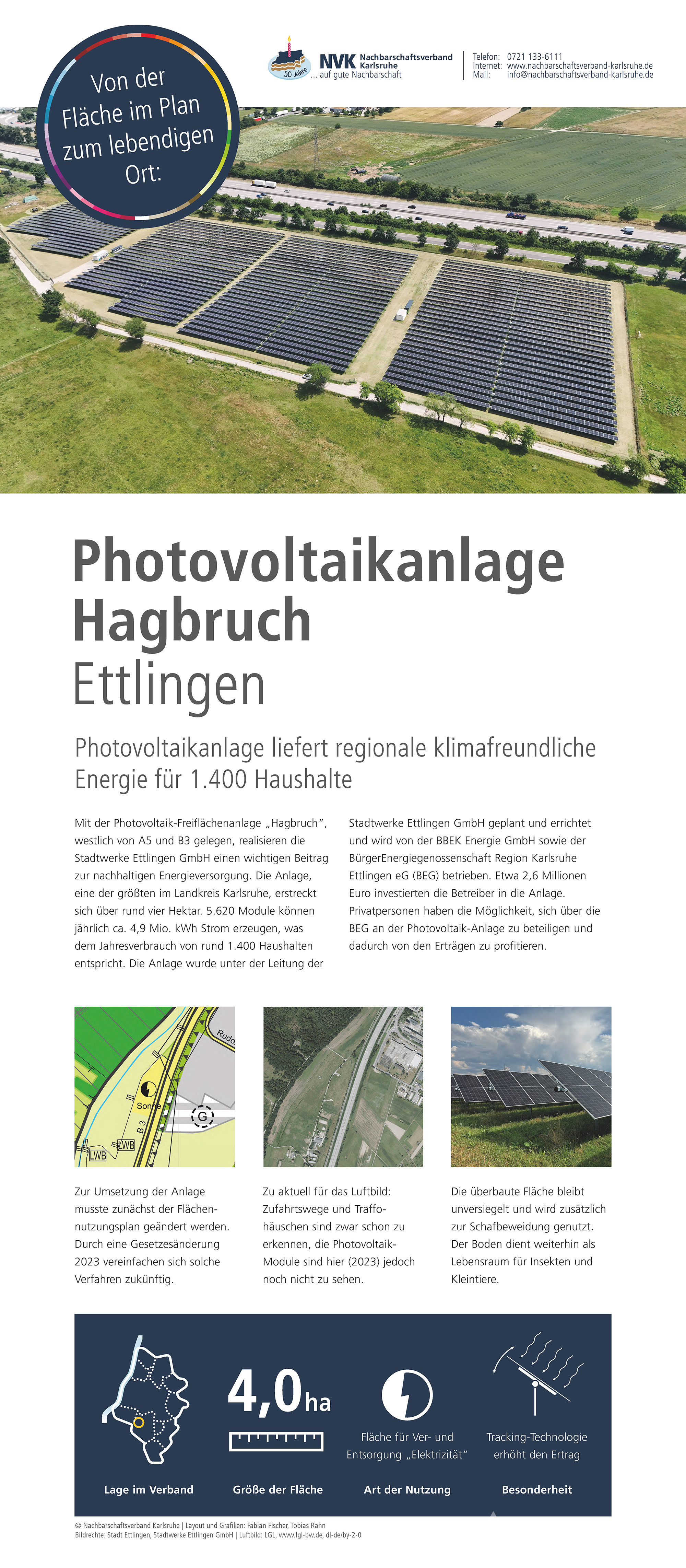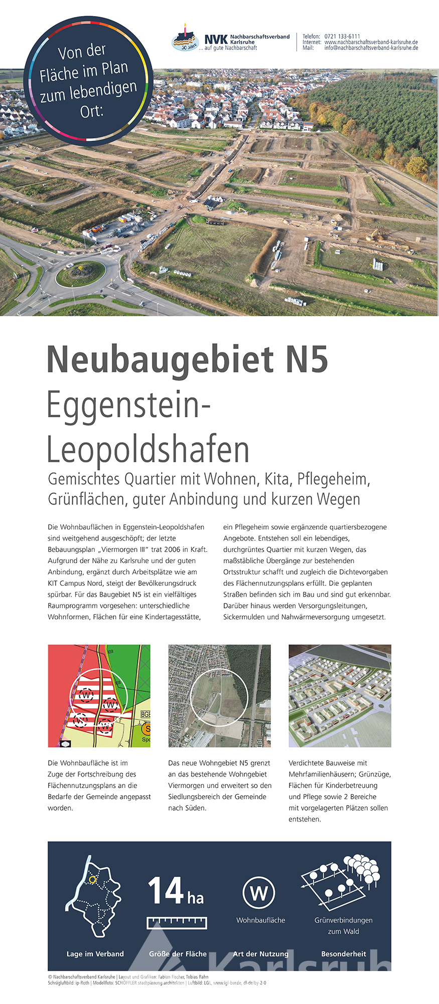 Im Jubiläumsjahr zeigt der Nachbarschaftsverband Karlsruhe eine Ausstellung zur Arbeit des Verbandes, zur Flächennutzungs- und Landschaftsplanung sowie zu ausgewählten Projekten aus den Mitgliedskommunen. Hier sind die Plakate, die auch bei den Jubiläumsveranstaltungen präsentiert werden zu finden.